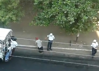 ယာဥ္ထိန္းရဲ ၂ ေယာက္ေရွ႕ မိနစ္ပုိင္းအတြင္း ျဖတ္သြားတ့ဲကားေတြကေန စပယ္ယာေတြ ေျပးဆင္းလာျပီး သူတုိ႔လက္ထဲ တခုခု ထည့္သြားၾကပါတယ္။ ထည့္တ့ဲပစၥည္းက ပုိက္ဆံျဖစ္ဖုိ႔မ်ားပါတယ္။