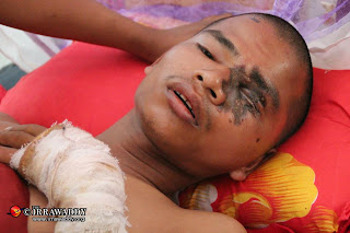 | လက္ပံေတာင္းေတာင္ သပိတ္စခန္း ၿဖိဳခြင္းမႈတြင္ မ်က္လုံးတဘက္ ကြယ္ခ့ဲရသည့္ ရဟန္းတပါး (ဓာတ္ပုံ - မန္းသားေလး / ဧရာဝတီ) |