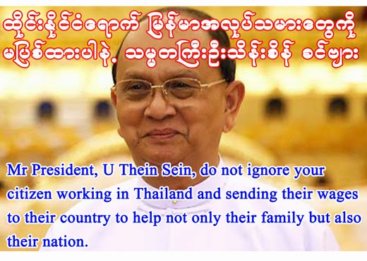 "ယခု ထိုင္းႏုိင္ငံ၌ ျဖစ္ေပၚေနသည့္ ႏိုင္ငံေရး အေျခေနမ်ားႏွင့္အတူ ပါ့စပို႕(စ္) အပါ၀င္ သက္ေသ အေထာက္အထားခိုင္လံု စြာရွိေနေသာ ျမန္မာအလုပ္သမားမ်ားသည္ ယခင္ေရာယခုပါ မတရားသျဖင့္ ဖမ္းဆီးခံေနရမႈမ်ားကို ဘန္ေကာက္ျမန္မာသံရံုးမွ သိေနပါေသာလည္ မိမိတို႕ႏွင့္ မသက္ဆိုင္သလို တာ၀န္ ကင္းမဲ့စြာ ေနေသာေၾကာင့္ က်ေနာ္မ်ားမွ မည္သူတစ္ဦး တစ္ေယာက္၏ တိုက္တြန္ခ်က္မပါပဲ မည္သည့္ ပါတီ မည္သည့္အဖြဲ႕ကိုမွ ကိုယ္စာျပဳျခင္း မဟုတ္ပဲ မိမိႏွင့္ဘ၀တူ ထိုင္းႏုိင္ငံေရာက္ ျမန္မာအလုပ္သမား၏ ခံစားေတြ႕ႀကံဳေန ရေသာ ျပႆနာမ်ားအတြက္ မိမိတစ္ဦးတည္ လာမည့္အဂၤါေန႕ နံနက္ ၁၀ နာရီ၌ ထိုင္း