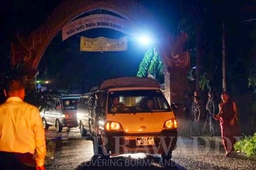 ဇြန္လ ၁ဝ ရက္ေန႔က မဟာ သႏၱိသုခမွ သံဃာေတာ္မ်ားကို ဖမ္းဆီးေခၚေဆာင္သြားစဥ္၊ ဓာတ္ပံု- ဧရာဝတီ